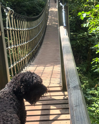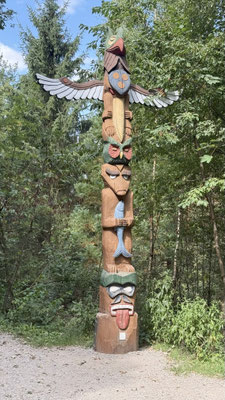 Durch erlebnisreiche Wälder mit Mammutbäumen und weiteren 100ten beheimateten Baum- und Straucharten, einem Indianerpfad, einer Hängebrücke, einem Schweinebraten,